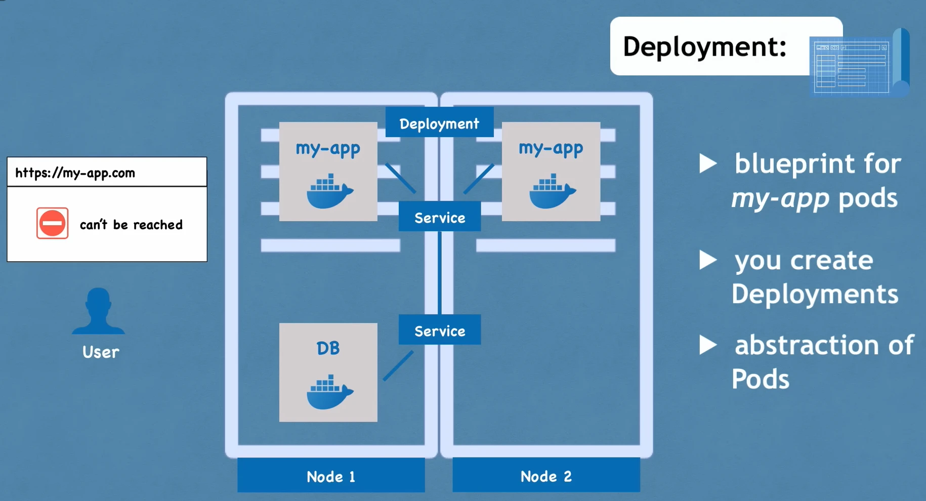 - You create Deployments, not Pods directly