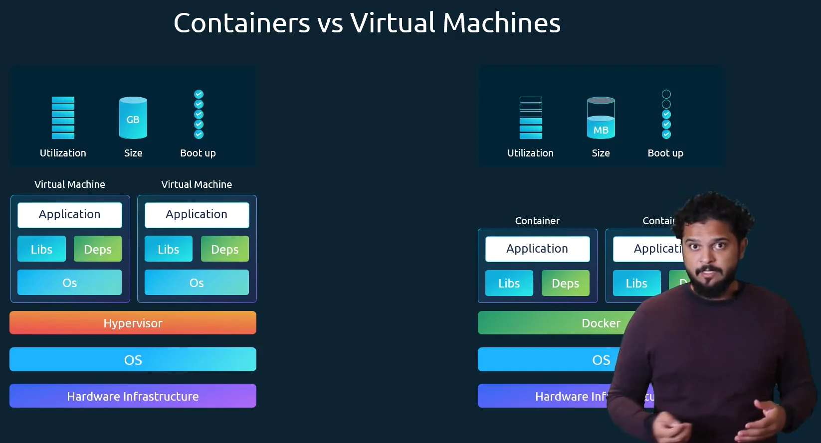 | Feature | Containers | Virtual Machines |